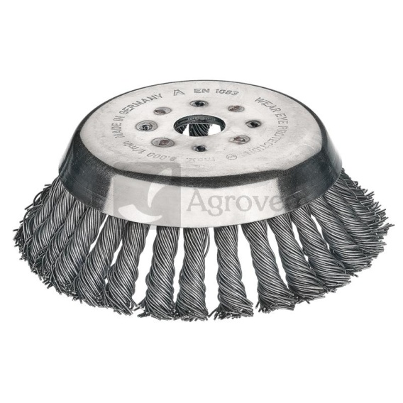 Ø zew. 180 mm, otwór 25,4 mm • Szczotka stożkowa, metalowa - premium • Ø otworu (mm): 25,4 • Ø zew. (mm): 180 • Wersja: sploty z drutu stalowego • Min. moc napędowa piły (KM): 1,5 • Materiał: stal